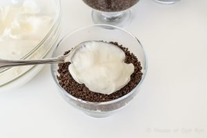 - Crush graham crackers in a food processor or in a plastic bag with a rolling pin. Place crushed crackers in a bowl and add sugar. Melt butter and pour over crackers and mix well. Place in 8 small bowls for serving and pack down. Freeze for 10 to 15 minutes to set cookies.