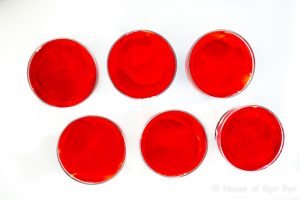 *The gelatin should be chilled but not firmly set. Pour a little gelatin onto the cream cheese layer to make sure it isn't mixing with the cream cheese mixture. It should sit on top of the cream cheese to form a red layer. If it mixing, freeze the cups for 10 to 15 minutes after spreading the cream cheese. Then add the cooled gelatin.
