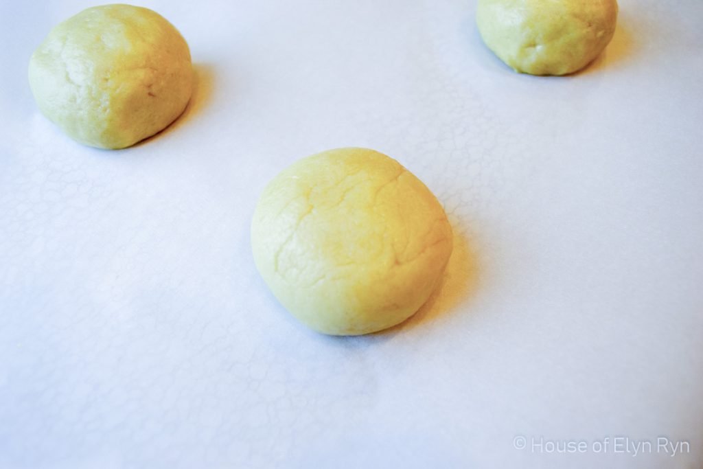 Roll the cookie in granulated sugar and it will help hid cracks and any imperfections. It also looks a little like peach fuzz.