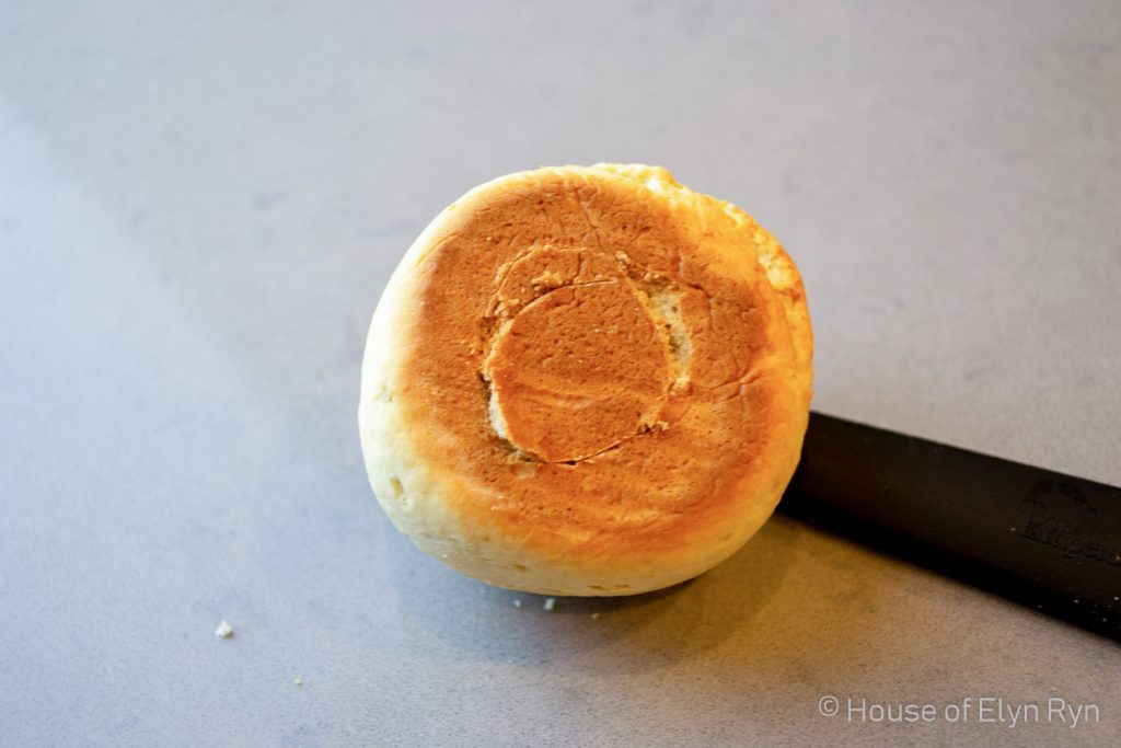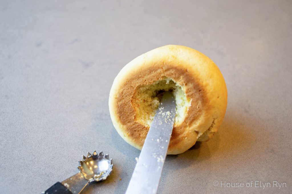 Once baked, and still a little warm, turn the cookie over and carefully cut out the bottom.