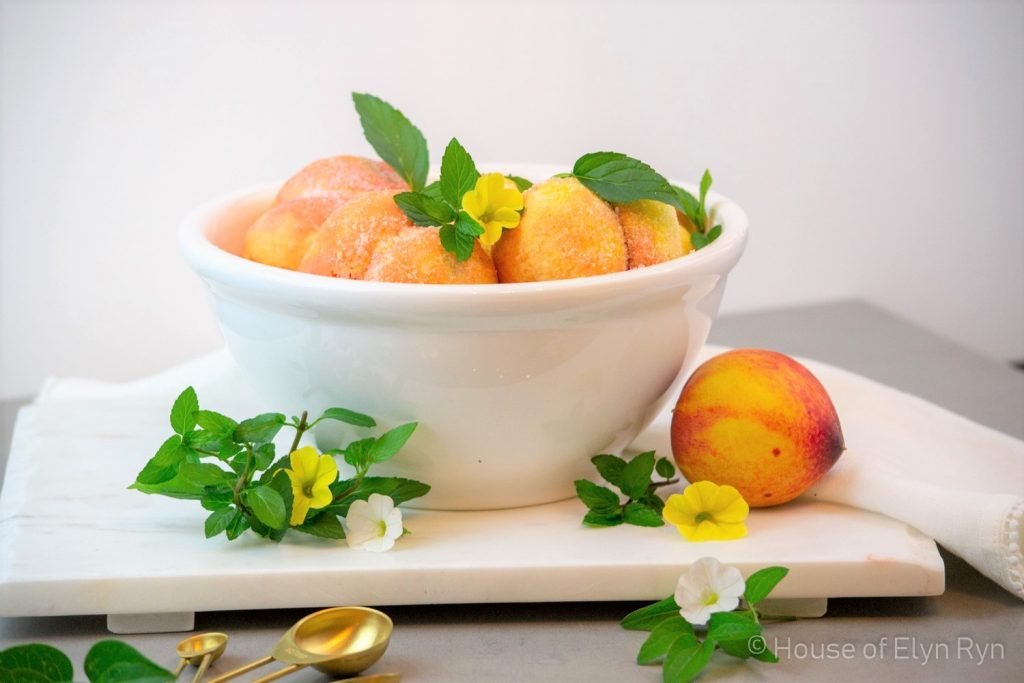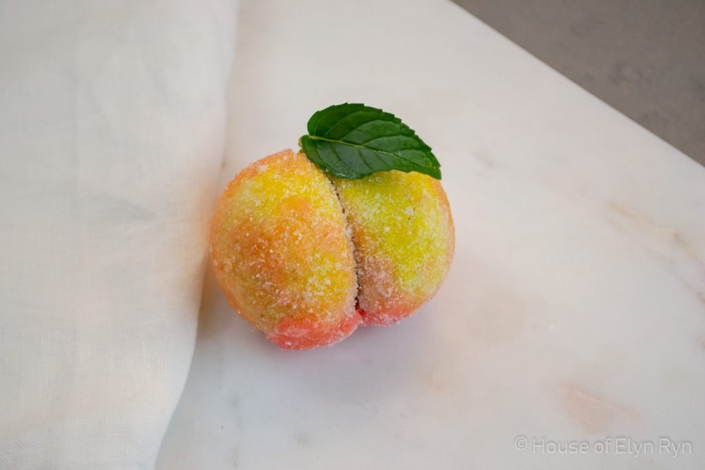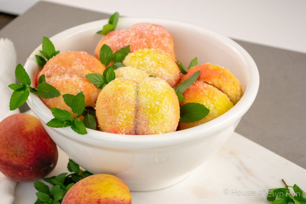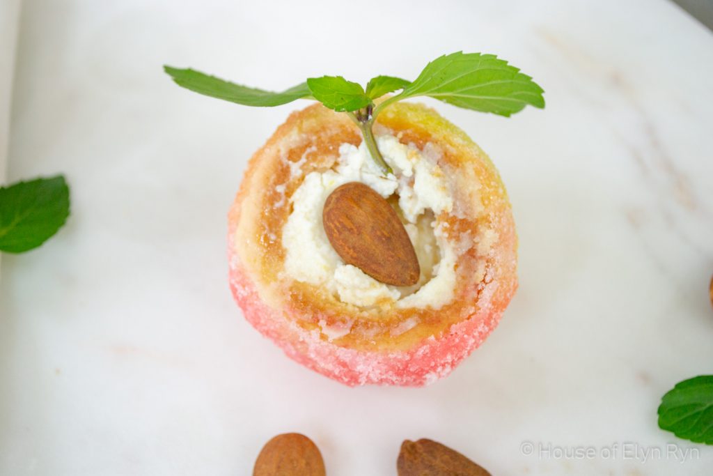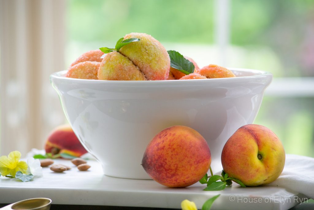 Imagine making peach cookies that are so realistic that on first look people mistake them for real peaches. That’s the fun of these Italian peach look-alike cookies or pesche dolci. They are shortbread stuffed with ricotta cheese and coated with sugar. You don’t have to be an artist to create them either. I made larger cookies to photograph, but found that no one wants to eat a cookie the size of a baseball! You should probably make them the size of walnuts or apricots. Of course, the larger they are, the more realistic they look. Click here to jump to the recipe.
