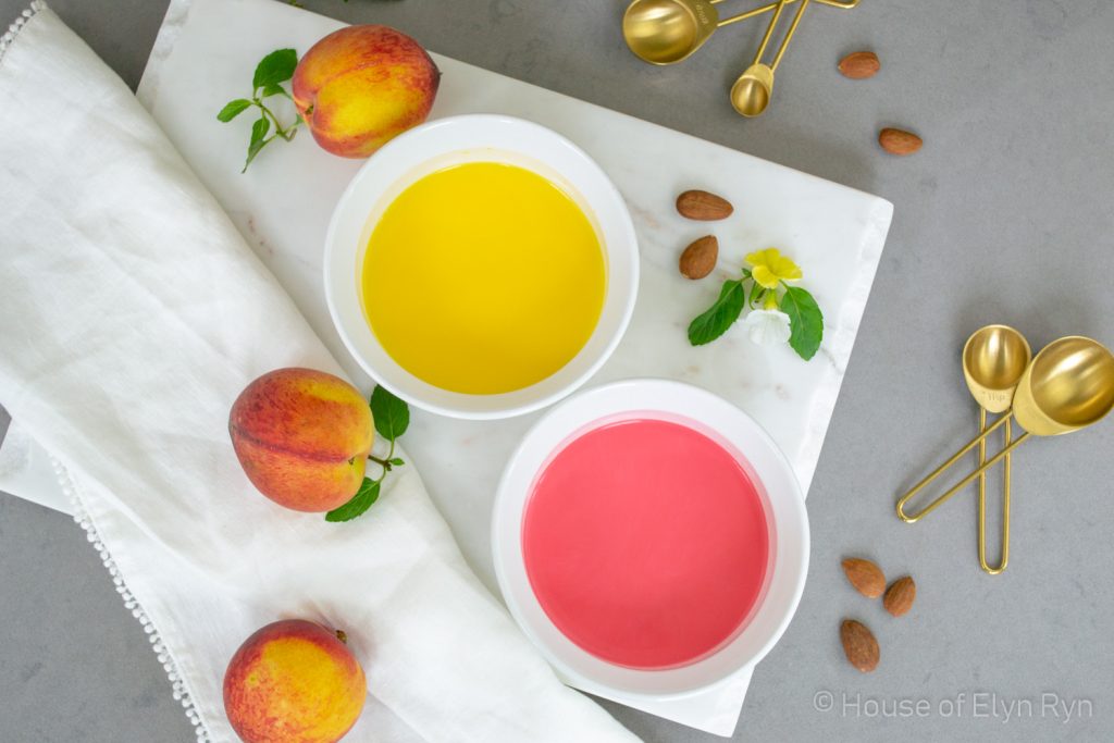 A little peach liqueur can be added to the dyes to impart a peach taste.