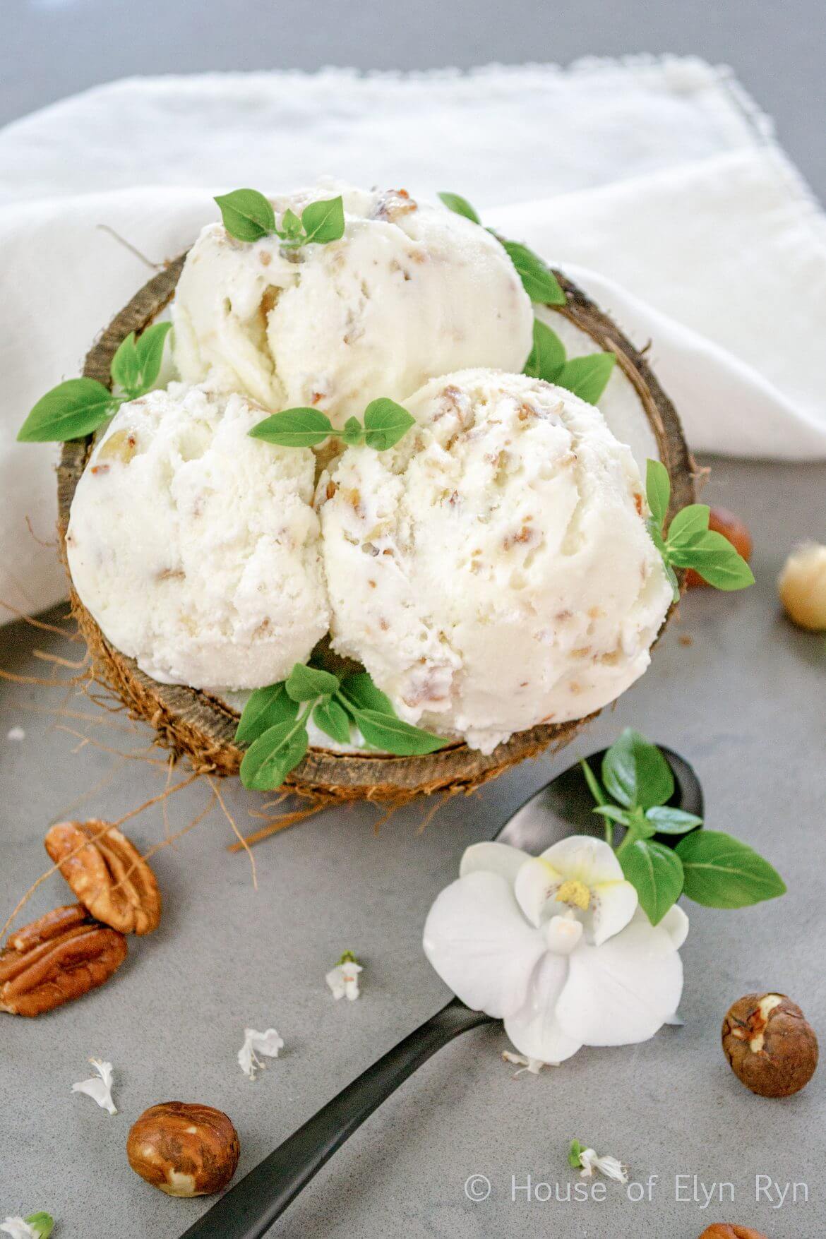 While the base recipe offers a luscious coconut flavor, the show’s real star is the flavorful mix of toasted nuts. The combination of almonds, pecans, hazelnuts, and macadamia nuts adds a delicious crunch that complements the smooth creaminess of the ice cream.