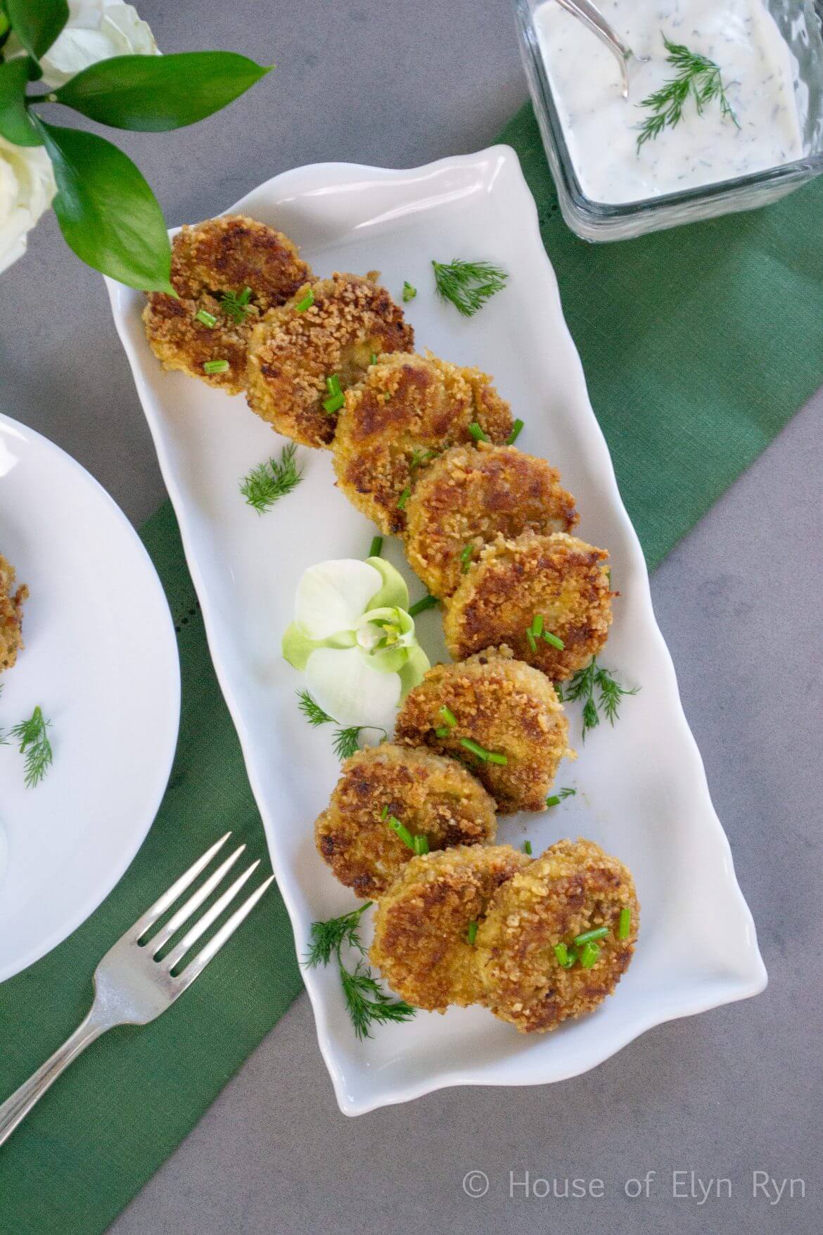 This recipe uses Chex Rice cereal for the bread crumbs. Although you may substitute other bread crumbs, rolling the crab cakes in Chex Rice cereal makes a crunchy breading. Therefore, these crab cakes never taste soggy! As a side benefit, Chex Rice cereal makes this a gluten-free recipe which is great for those who are gluten intolerant. If gluten is not a concern, use you can substitute panko breadcrumbs.