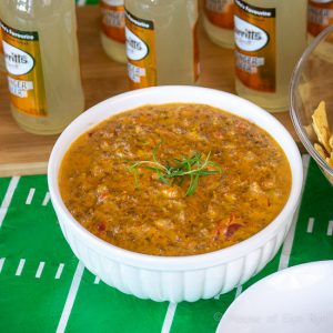 No dip is complete without the right dipping chips. For this spicy Mexican dip, I recommend stocking up on plenty of thicker tortilla chips or scoops that hold their shape without breaking apart. Also, consider serving this dip in small, individual containers for guests to take with them as they settle in to watch the game. Finally, consider doubling or tripling this recipe for larger gatherings.