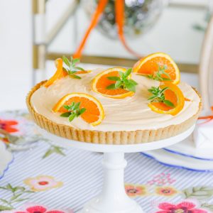 Garnished with Cara Cara oranges, their vibrant color, and sweet taste, give this tart a pretty presentation.