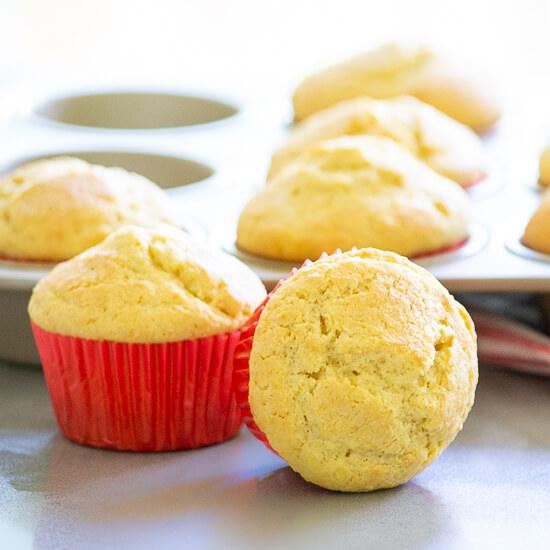 This cornbread is made with sour cream which gives it a delicious taste and texture. I chose to make muffins with the batter but you can cook it in a square pan or even a cast-iron skillet. The recipe has notes for cooking it in a pan if you choose not to make muffins.