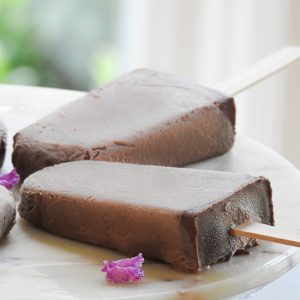 Pull on your popsicles to extract them from the molds. If they don’t pop out, gently run a little hot water over them. This helps loosen the pops so they come out easily. However, as the pops begin to melt, it’s best to briefly return them to the freezer. Or you can freeze a marble tray, remove it from the freezer, extract the fudgesicles, and place them on the marble. The frozen marble will keep the fudgesicles cold until you can serve them. Enjoy!