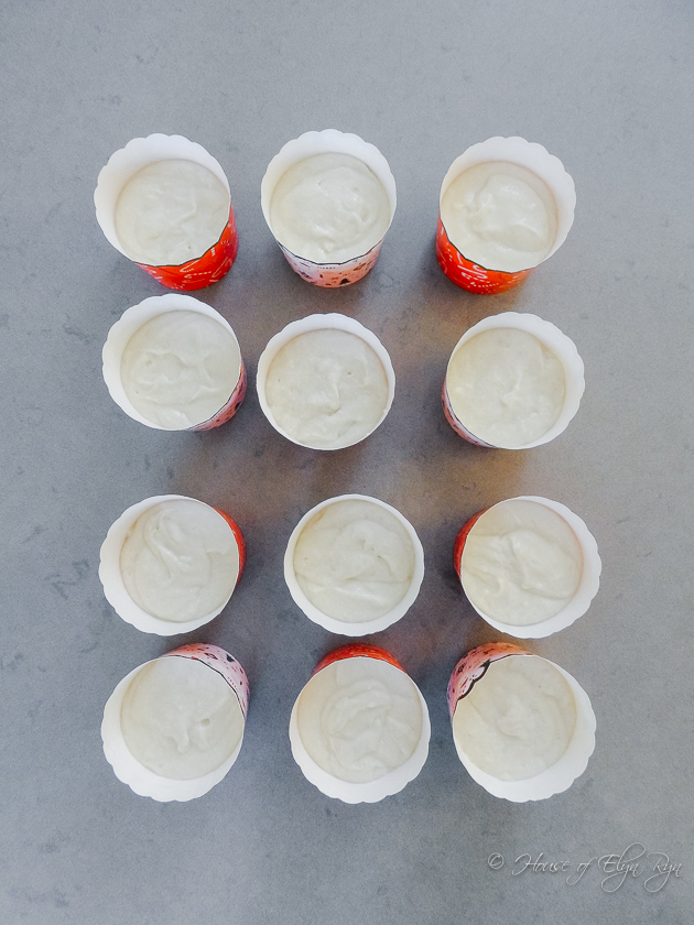- Using a cookie scoop, divide the batter between the cupcake liners or baking cups.