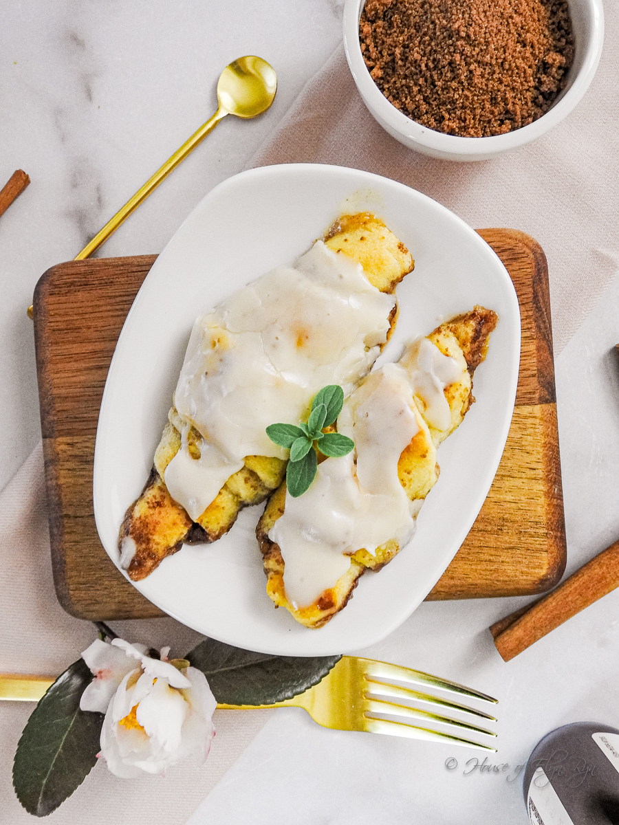 - Spread frosting over the cooked cinnamon rolls.