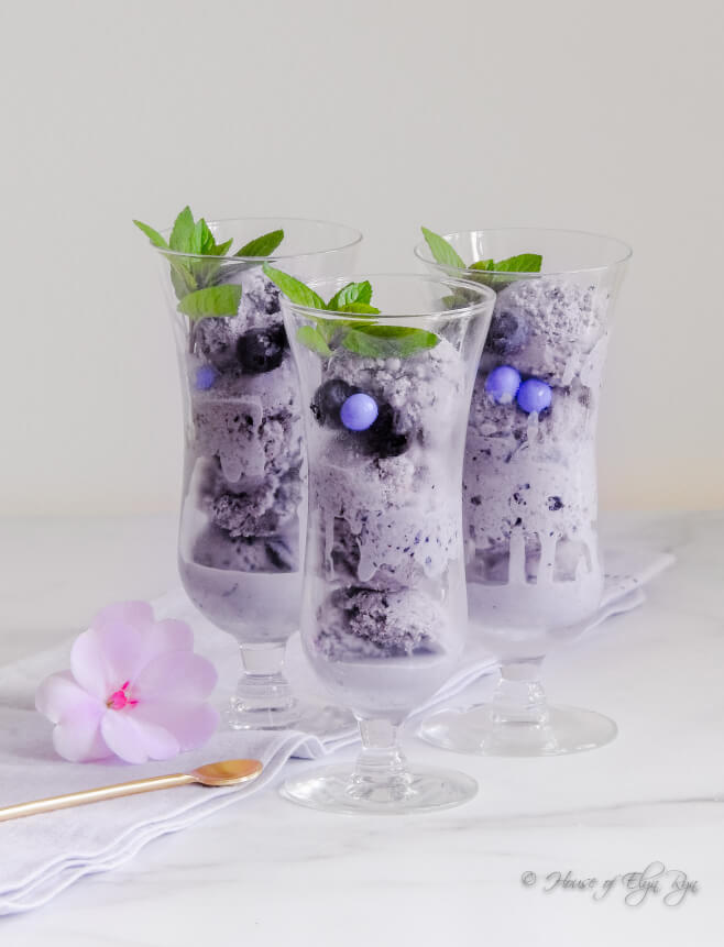 You can choose fresh or frozen blueberries in this recipe, but I prefer frozen ones. They chop more easily in a food processor and assist in cooling the ice cream after preparing the custard. Finely chopping the blueberries creates a lovely blue-lavender hue in the ice cream.