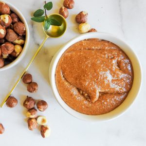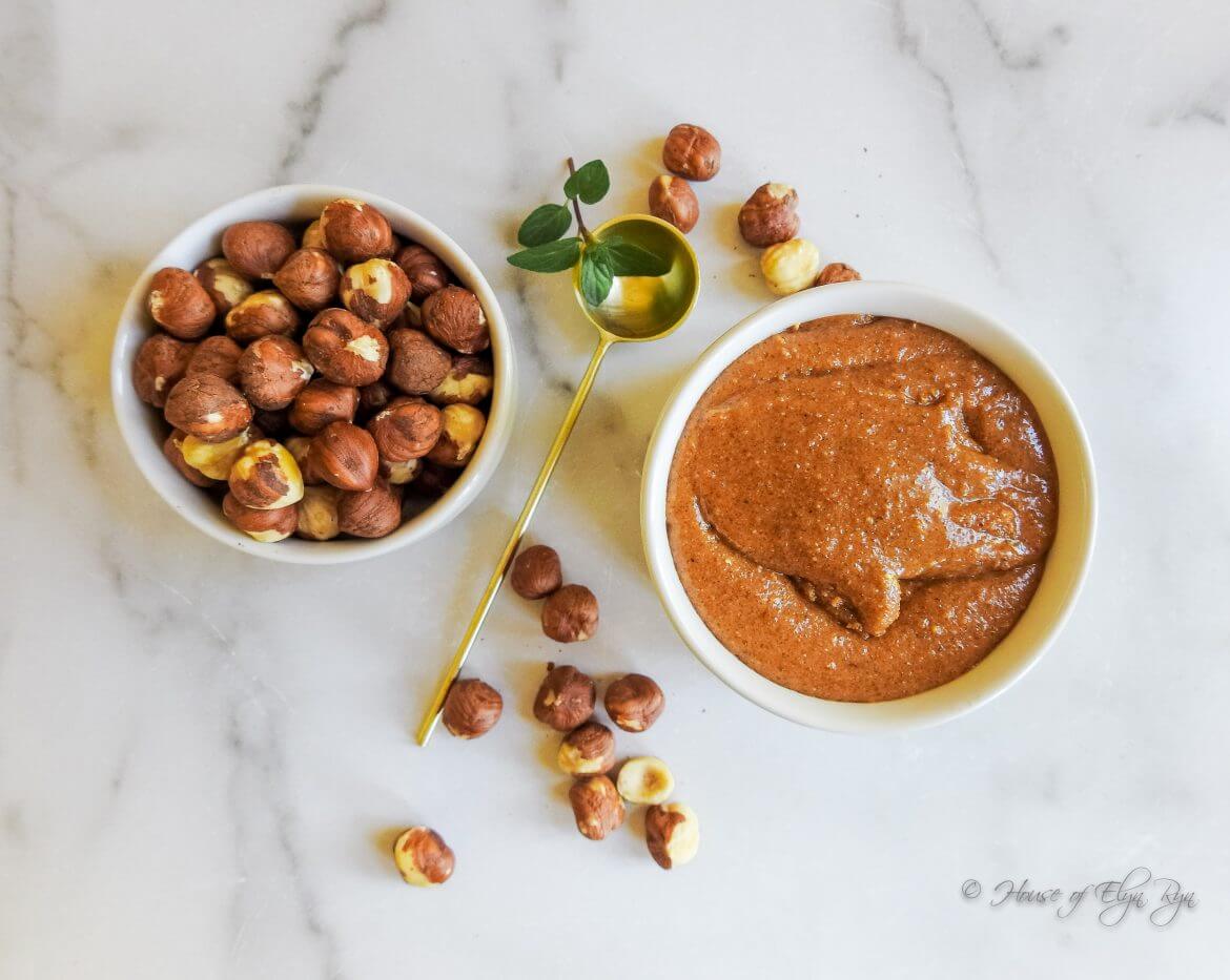 - Keep processing, and a “loose” paste will form. The longer you process, the more oil is extracted from the hazelnuts, resulting in a thick yet pourable paste. It is ready at this point.