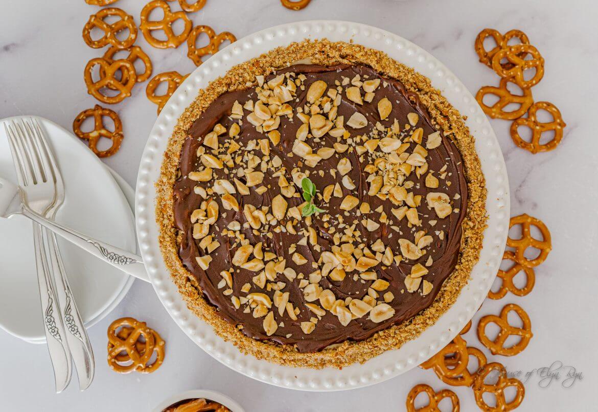 There are two types of crust lovers. Thick crust lovers and thin crust lovers. This recipe makes a thicker crust. If you like a thinner crust, change the ingredient amounts for the crust to:- 1 3/4 cups pretzels, crushed–measure after crushing