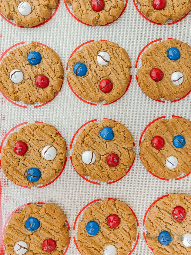 It is optional to add Peanut Butter M&M’s. They add color and an extra peanut butter taste to these peanut butter cookies. You can use different colors to match a theme, a special occasion, or a holiday.