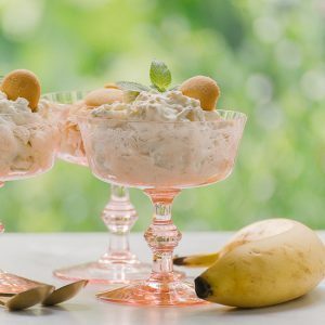 This dessert looks particularly appealing when served in individual containers, accompanied by a cookie and a mint sprig. It keeps well in the refrigerator for one to two days. However, if you like crunchy cookie pieces, serve this dessert as soon as you make it because the longer it sits, the softer the cookie crumbs become. Just be sure to toss the bananas in lemon juice to keep them from turning brown if you want to make it ahead of time.