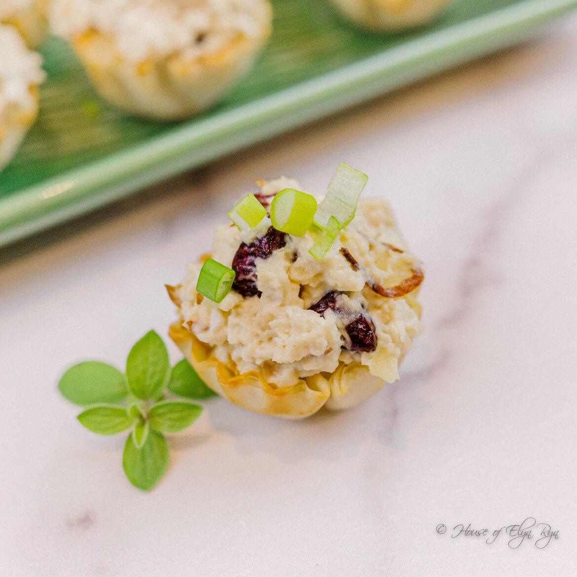 What to do with all the leftover holiday turkey–make these easy cranberry turkey salad appetizers served in phyllo shells! Or use this salad to make sandwiches or serve it as a side dish to accompany a refreshing grape salad.