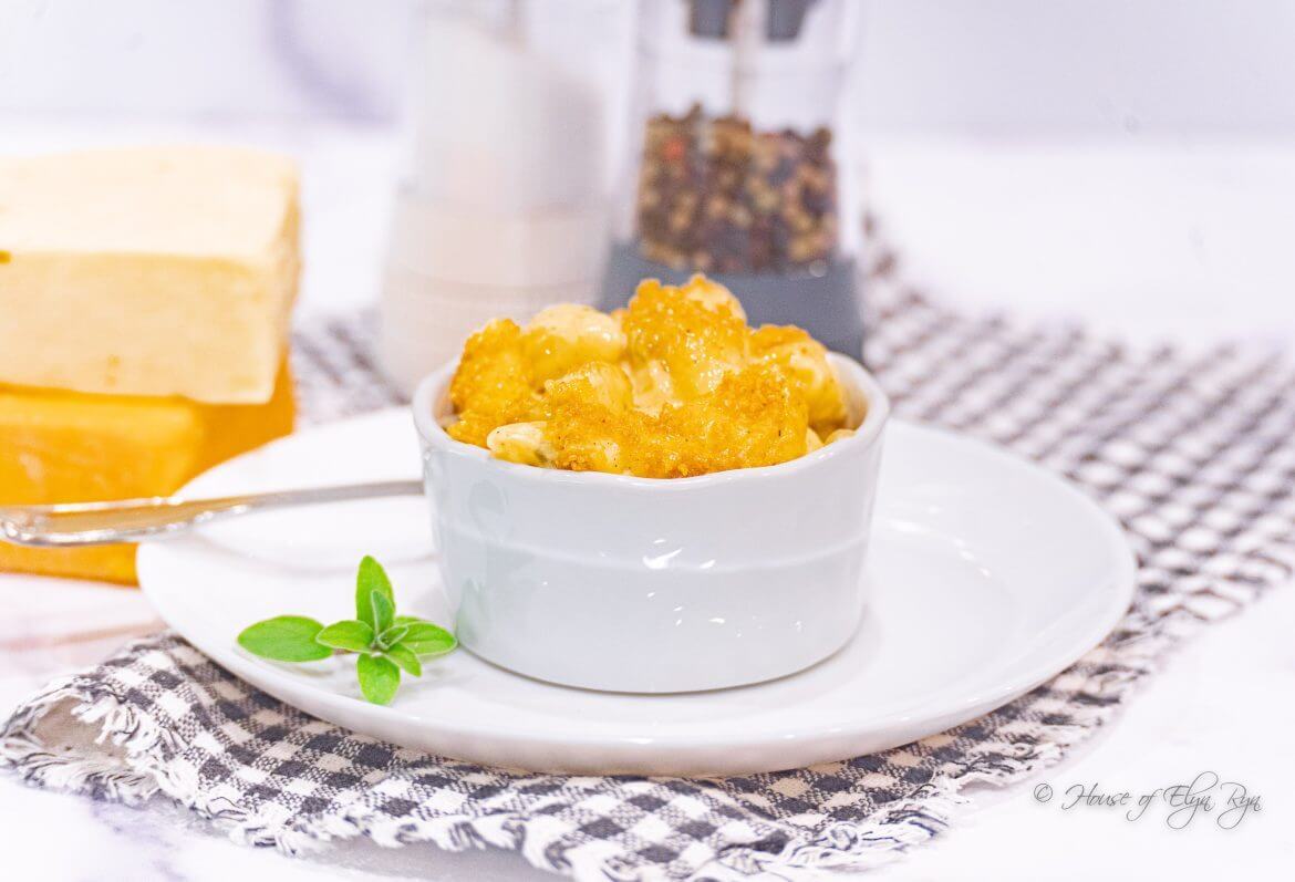 This macaroni and cheese dish contains gluten from the pasta and flour in the sauce. However, you can make this pasta dish gluten-free by using gluten-free pasta. I have tried many gluten-free pastas. Some hold up better than others when boiled in water. I have found that Barilla Gluten Free Elbows maintain their shape in boiling water and taste similar to regular pasta. In addition, they are more readily available in grocery stores.