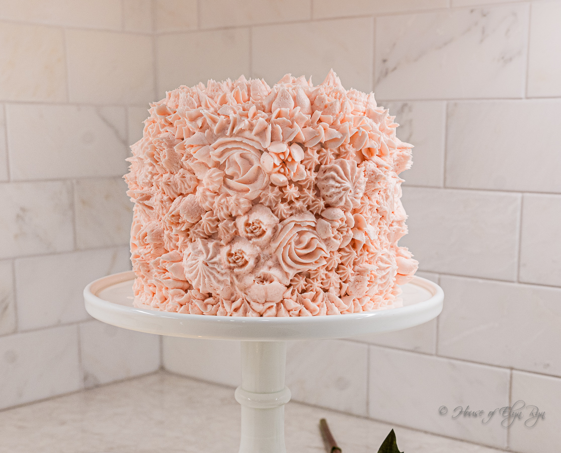 The delightful three-layered pink confection is a feast for the eyes and the palate, featuring a luscious almond cherry-flavored cake that perfectly complements its sweet frosting. The captivating pink hue is derived from maraschino cherries, giving the dessert a charmingly vibrant appearance. The design, decorated with piped flowers created using a variety of piping tips, is beautiful and approachable. Although it may seem complicated, the frosting is quite forgiving, allowing you to place the flowers close together in any creative pattern you desire. This makes it an ideal choice for bakers looking to create a beautiful cake without the stress of perfection!