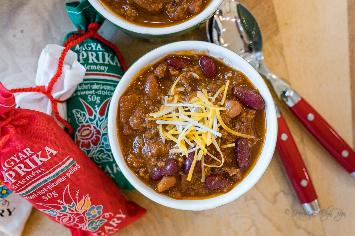 This chili contains a plethora of spices, giving it a rich, robust taste. Key spices are two kinds of paprika: sweet and smoked. The sweet paprika contributes a mild sweetness and vibrant color, while the smoked paprika infuses the dish with a deep, smoky essence that elevates the overall taste. Together with other spices like cumin, cayenne pepper, and garlic powder, these paprikas create a harmonious balance, ensuring each bite bursts with complexity and a warmth that keeps you coming back for more.