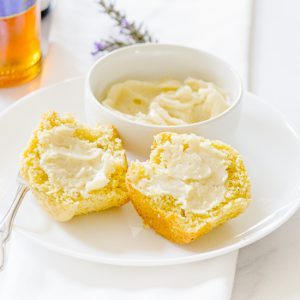 Honey is the sweetener for this butter. I recommend using lavender honey for a delicious taste, but other honey flavors are also tasty.