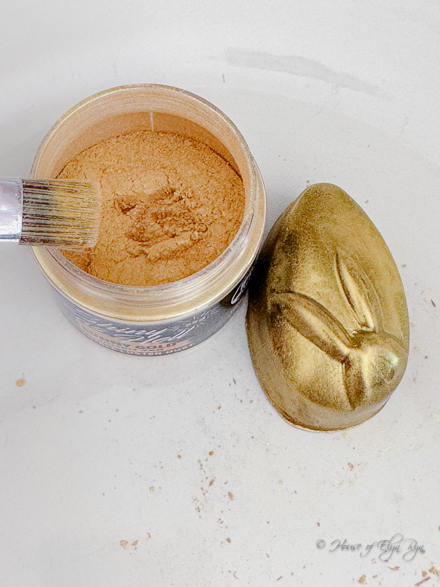 For a festive look, brush the eggs with gold powder luster dust to create golden eggs.
